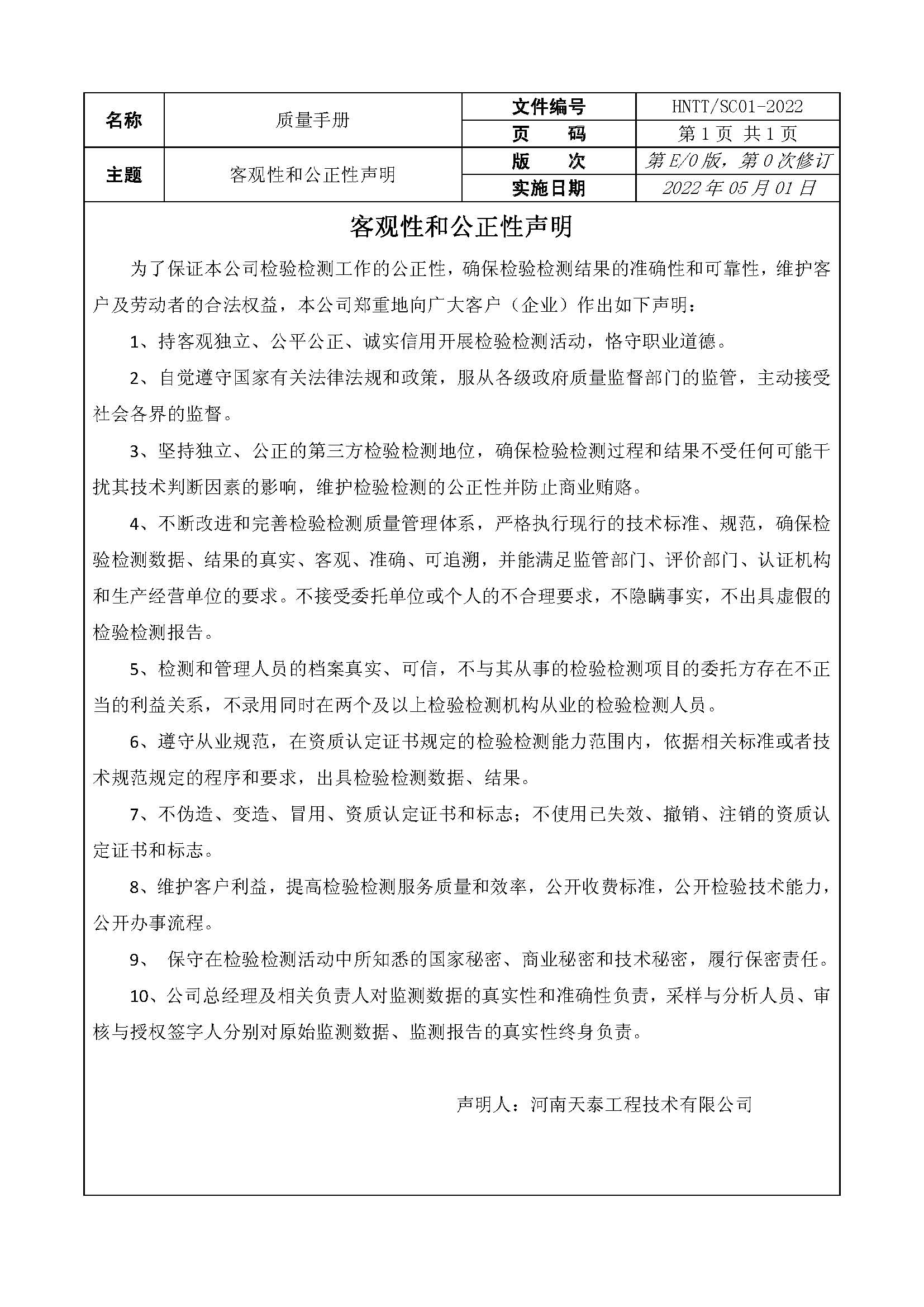 机构承诺