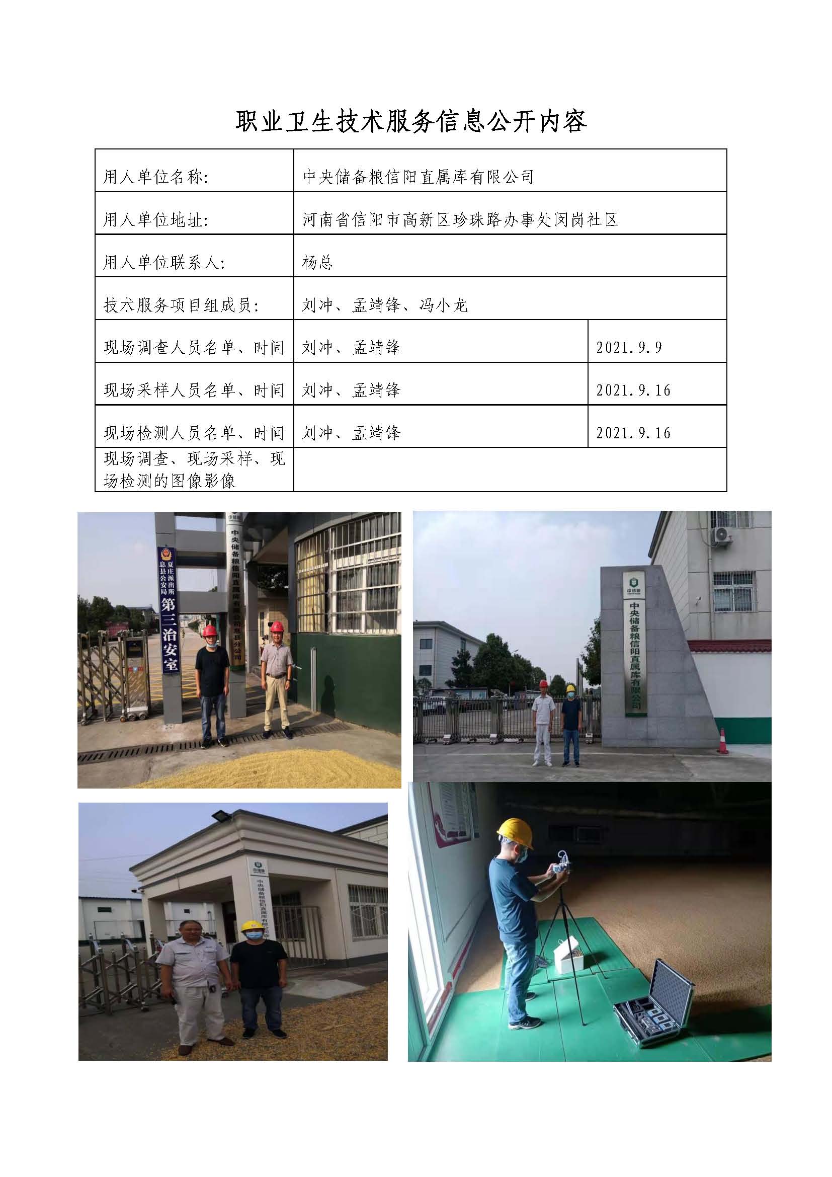 中央储备粮信阳直属库有限公司职业病危害因素检测